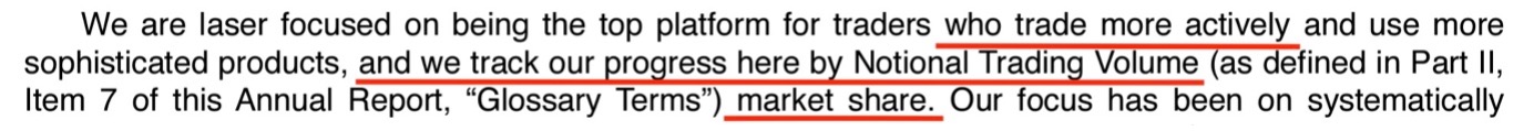 Notional trading volume is the total dollar value of trades that are executed over a specified time. It is in Robinhood’s best interest for customers on their platform to trade more often. Why? Because that is how Robinhood makes money.