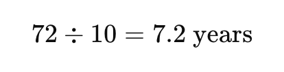 - If you expect to double your money in 7.2 years, the calculation would be: